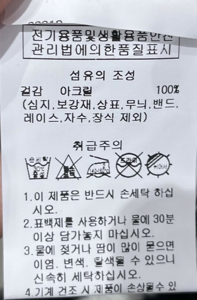 • 처음 배송된 상품상태와 다를 경우(세탁/착용 후 외출하신 경우) 반품이 불가합니다.
