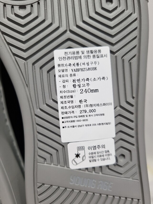 | 1. 제품 소재 (운동화인 경우에는 겉감, 안감을 구분하여 표시) | 소가죽 |
