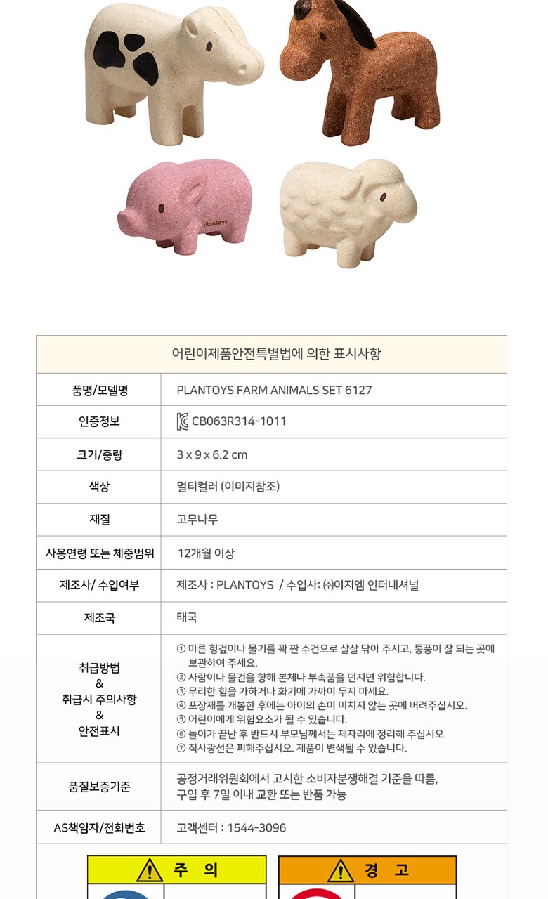 1. 품명 및 모델명 | PLANTOYS FARM ANIMALS SET 6127 |