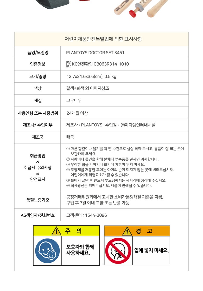 1. 품명 및 모델명 | PLANTOYS DOCTOR SET 3451 |