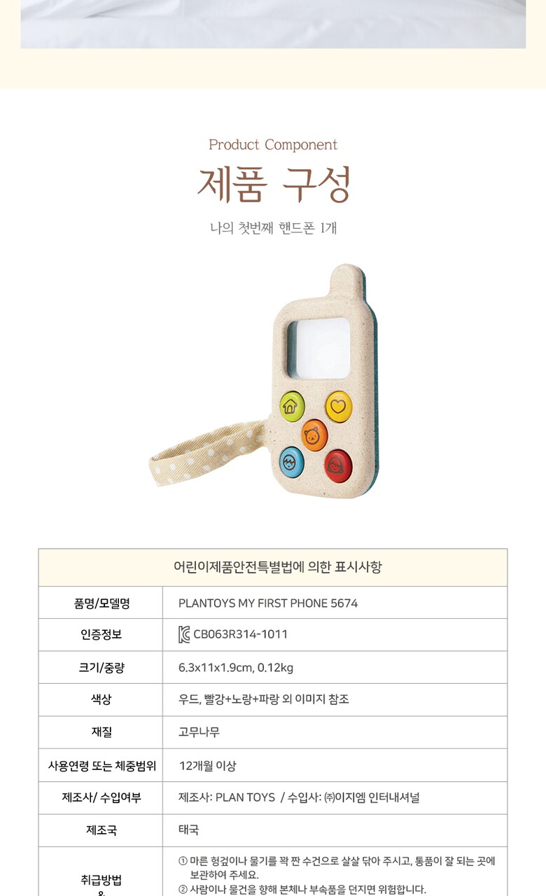 1. 품명 및 모델명 | PLANTOYS MY FIRST PHONE/5674 |