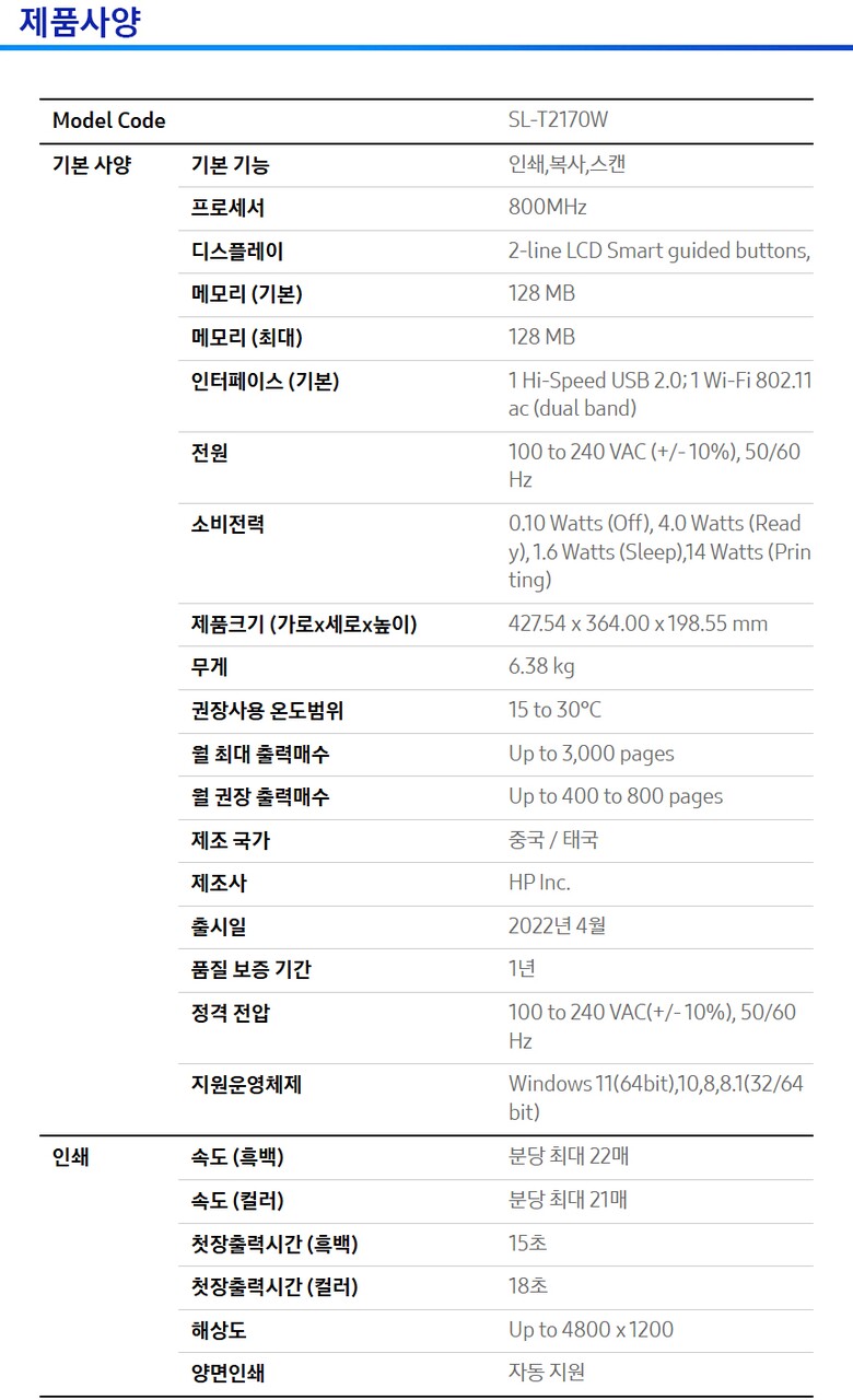1. 모델명(품번) | SL-T2170W |