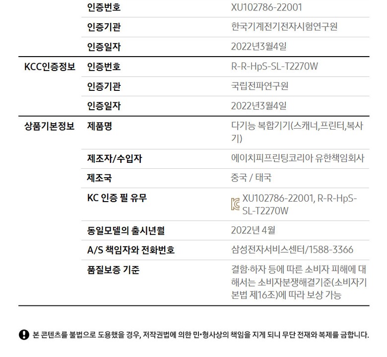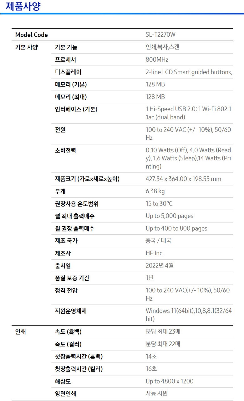 1. 모델명(품번) | SL-T2270W |