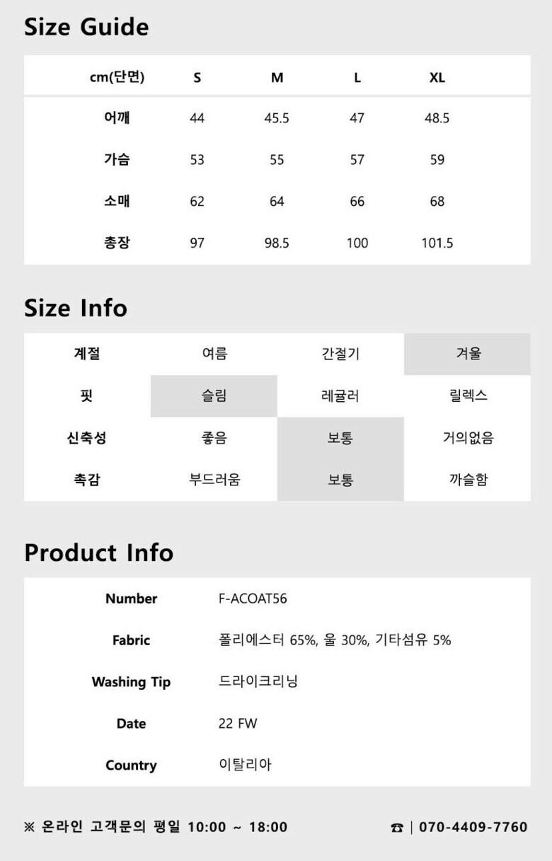 상체가 있으시거나 두꺼운이너를 입으실경우 한사이즈 크게 입으셔도 됩니다