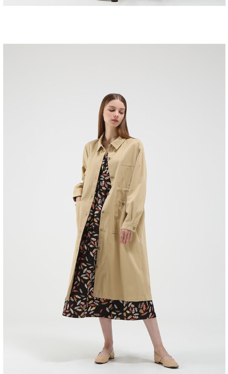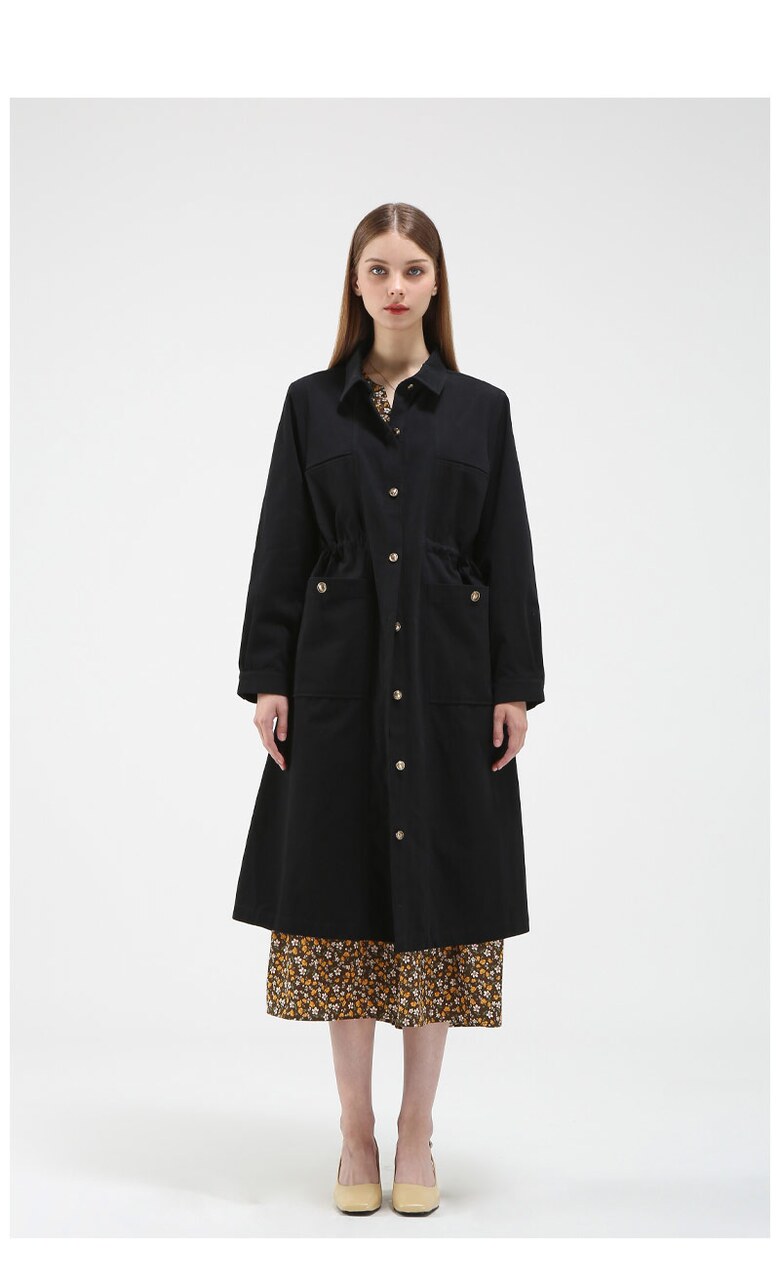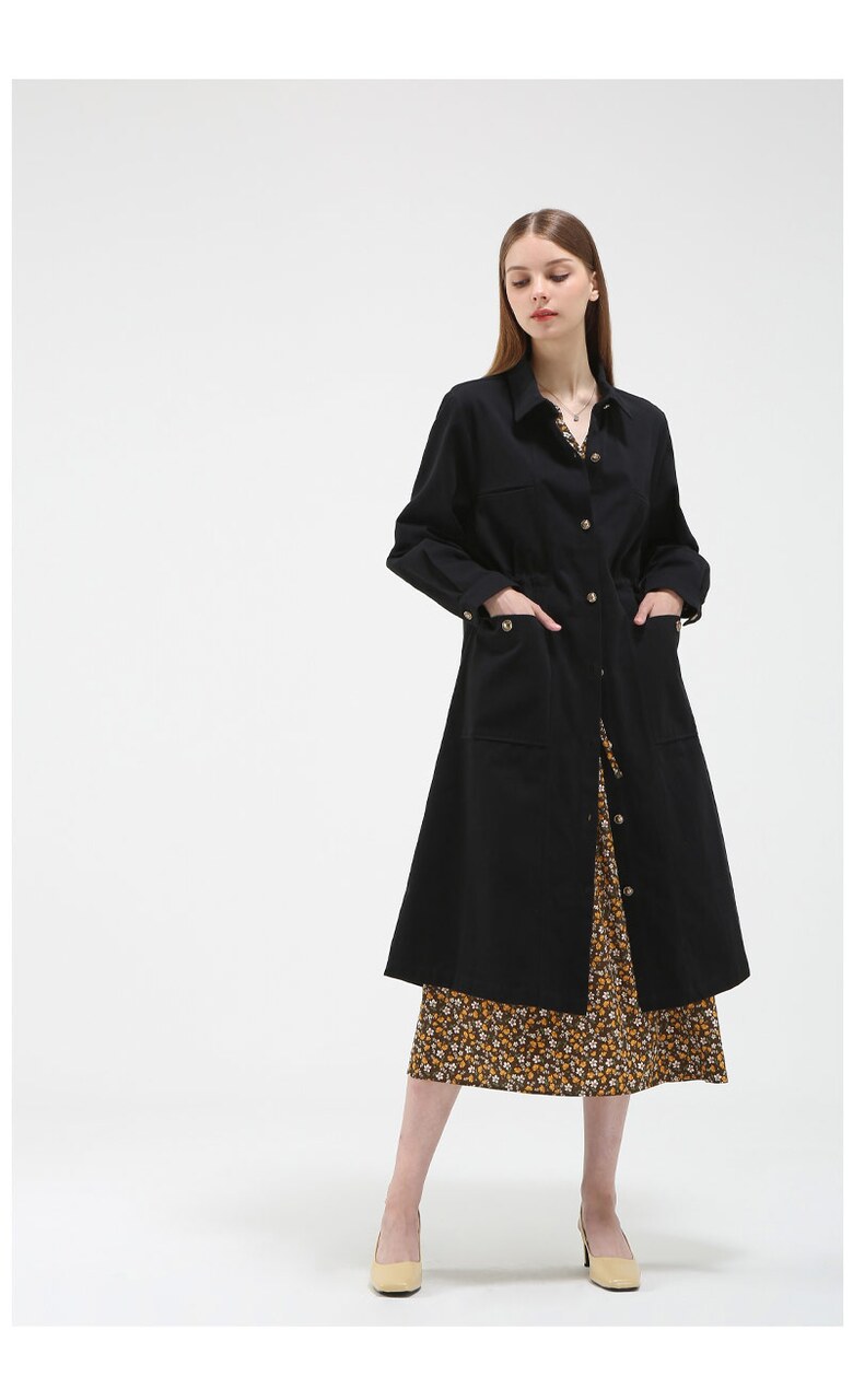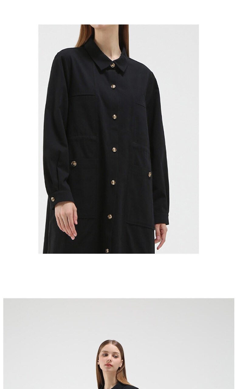 포켓 디테일 코튼 롱 코트