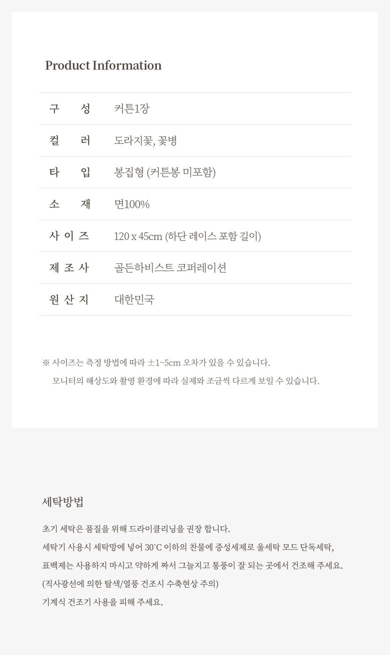7. 세탁방법 및 취급시 주의사항 | 상세페이지 참조 |