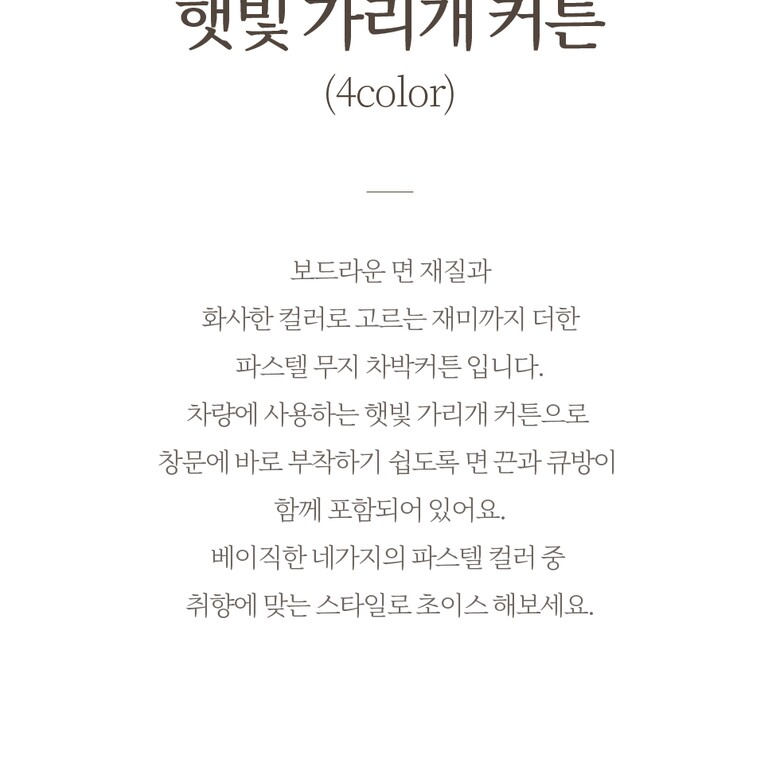 4. 제품구성 | 커튼 1장, 커튼줄 1개, 흡착판 2개 |