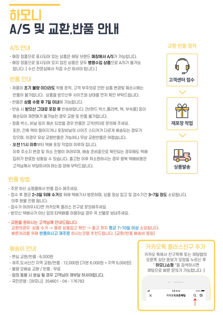 8. A/S 책임자와 전화번호 | 안내 / 070-8690-0164 카카오톡 / 하모니쇼핑 |