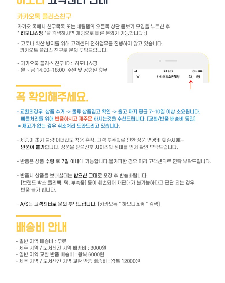 8. A/S 책임자와 전화번호 | 안내 / 070-8690-0164 카카오톡 / 하모니쇼핑 |