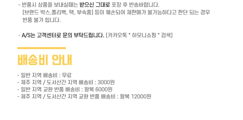 상품불량에 의한 반품, A/S, 품질보증 및 피해보상 등에 관한 사항은 소비자 분쟁해결기준(공정거래위원회 고시) 구매자가 미성년자인 경우에는 상품 구입시 법정대리인이 동의하지 아니하면 미성년자 본인 또는 법정대리인이 구매취소 할 수 있습니다. |
