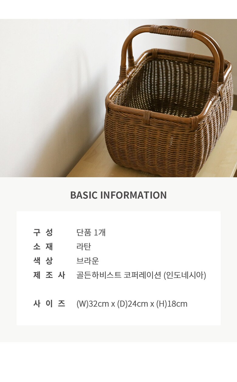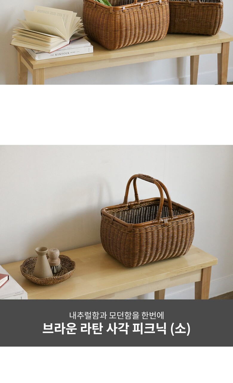 브라운 라탄 사각 피크닉 (소)
