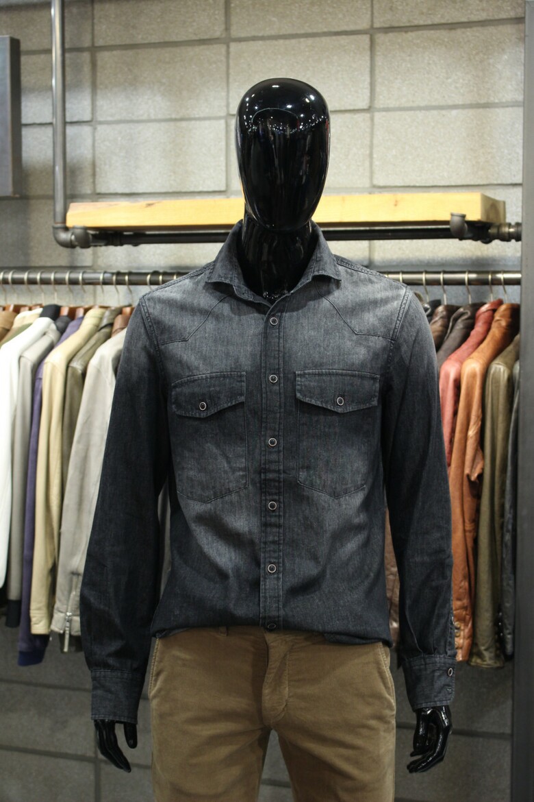 세련된 워싱블랙컬러의 데님셔츠입니다