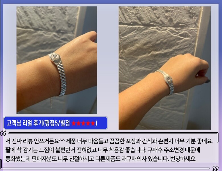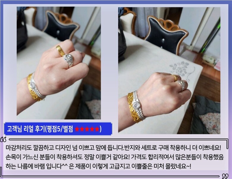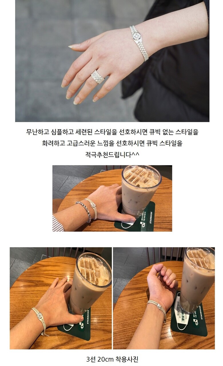 -물기는 최대한 멀리해주시고 물기가 묻으면 바로 닦아주시면 새상품처럼 오래도록 착용이 가능합니다. |
