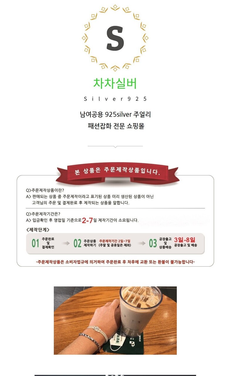 1. 소재 / 순도 / 밴드재질 | 순은 92.5%이상 함량 |