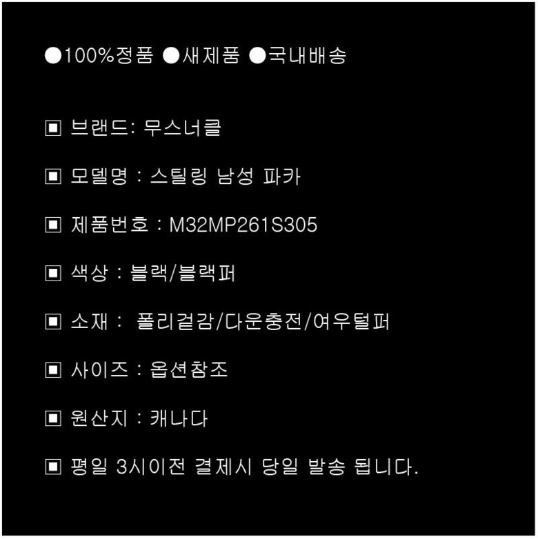 [명품] 무스너클 스틸링 파카 남성 패딩 M32MP261S305