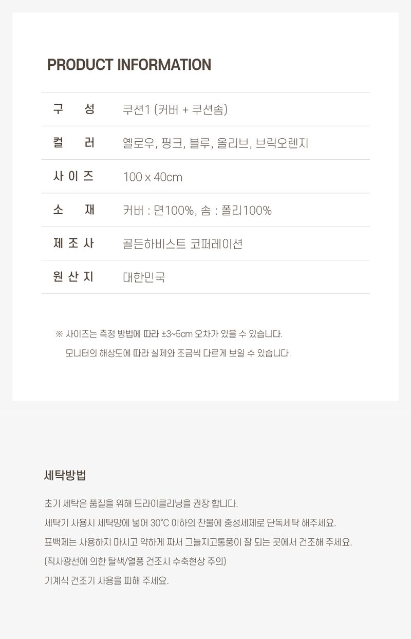 라곰 코듀로이 직대 롱쿠션(솜포함) 100x40 5color