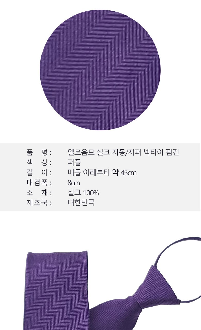 [ELLE HOMME] 엘르옴므 실크 자동/지퍼 넥타이 - 펌킨 퍼플 8cm