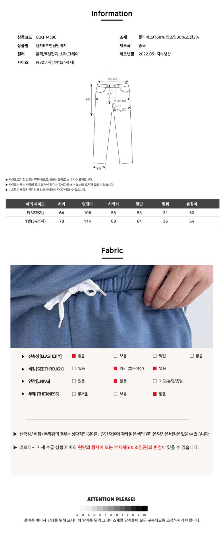 블레오[BLEO] 남성 여름 편한 밴딩 기본 5부 숏팬츠 반바지
