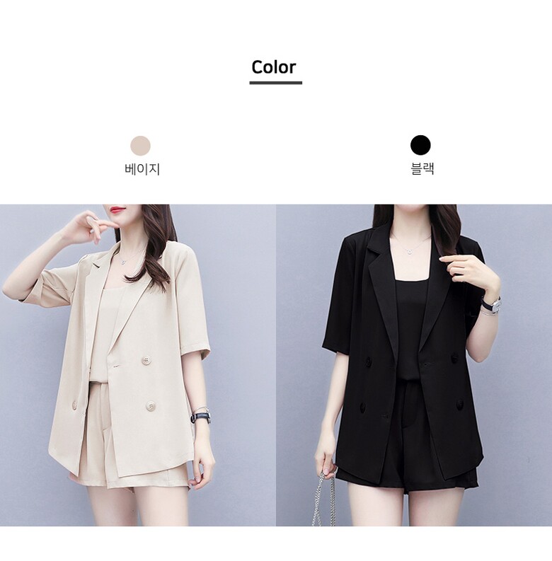 블레오[BLEO] 여성 루즈핏 반팔 자켓 끈나시 반바지 3세트