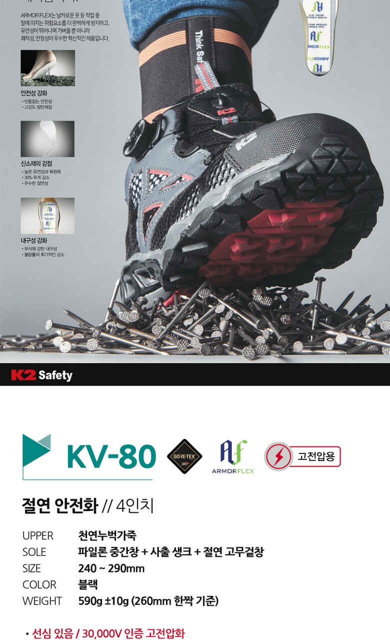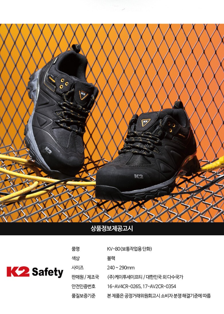 K2 세이프티 가벼운 방수 4인치 절연화 안전화 KV-80