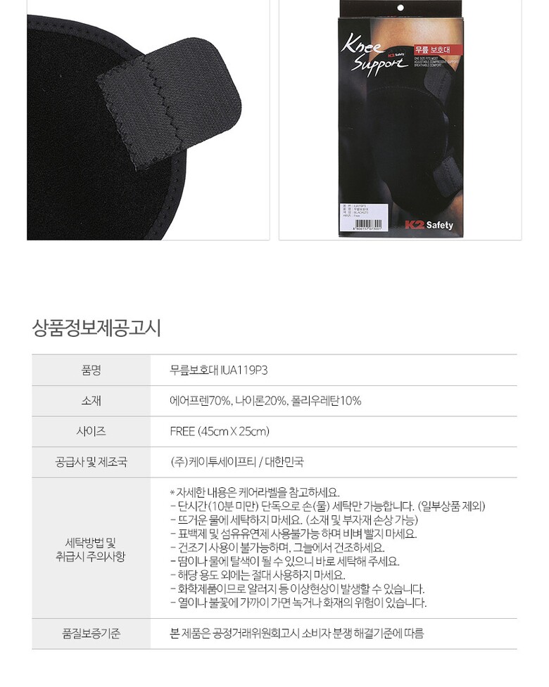K2 운동 스포츠 무릎 아대 보호대 1개입 IUA119P3