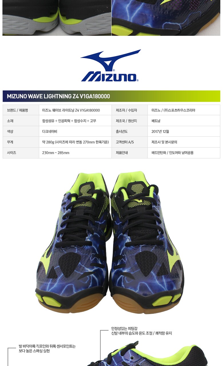 미즈노 웨이브라이트닝Z4 D.NV V1GA180000 배드민턴화