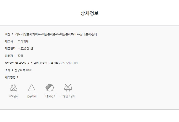 | 9. 상품별 세부 사양 | 상세설명참조 |