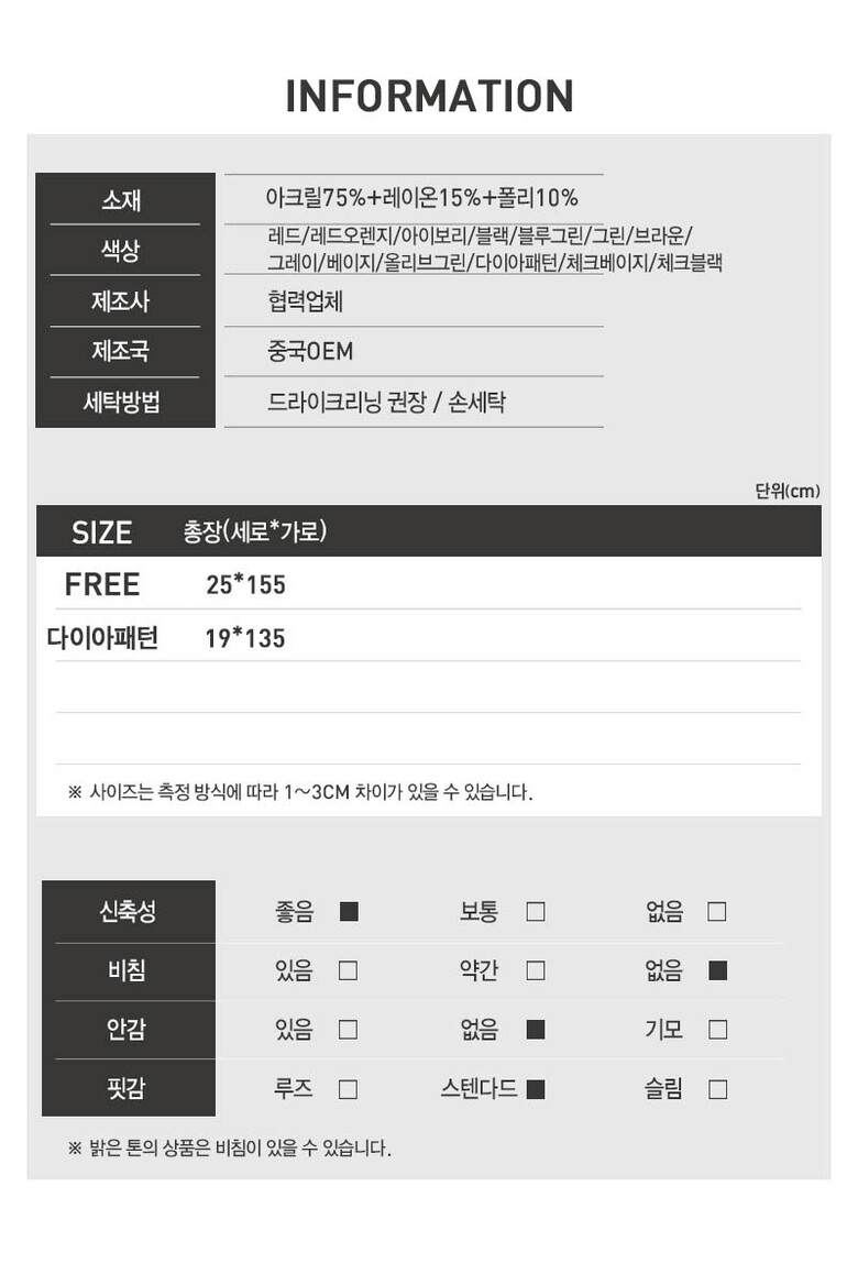 | 1. 제품 소재 (섬유의 조성 또는 혼용률을 백분율로 표시, 기능성인 경우 성적서 또는 허가서) | 상세페이지참고 |