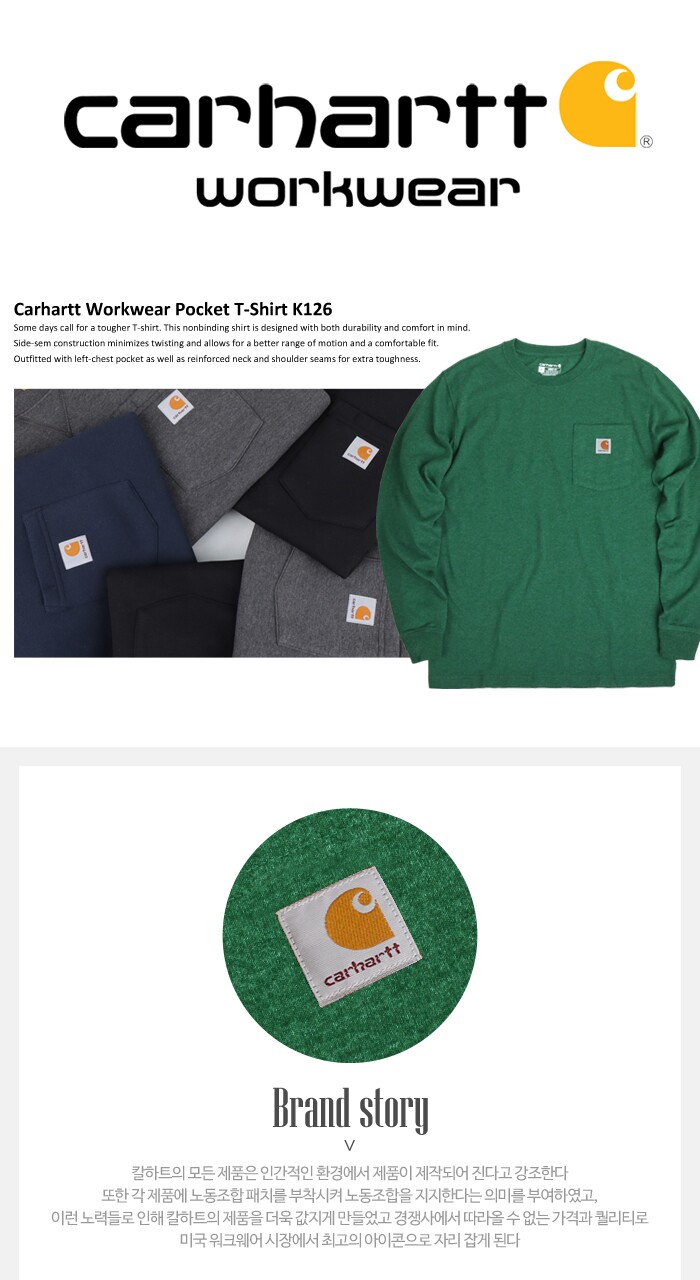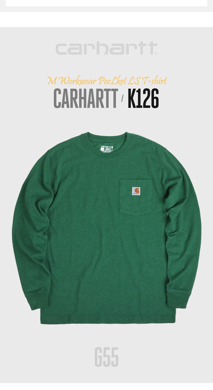 칼하트 남여공용 포켓 면 긴팔 티셔츠 K126-G55