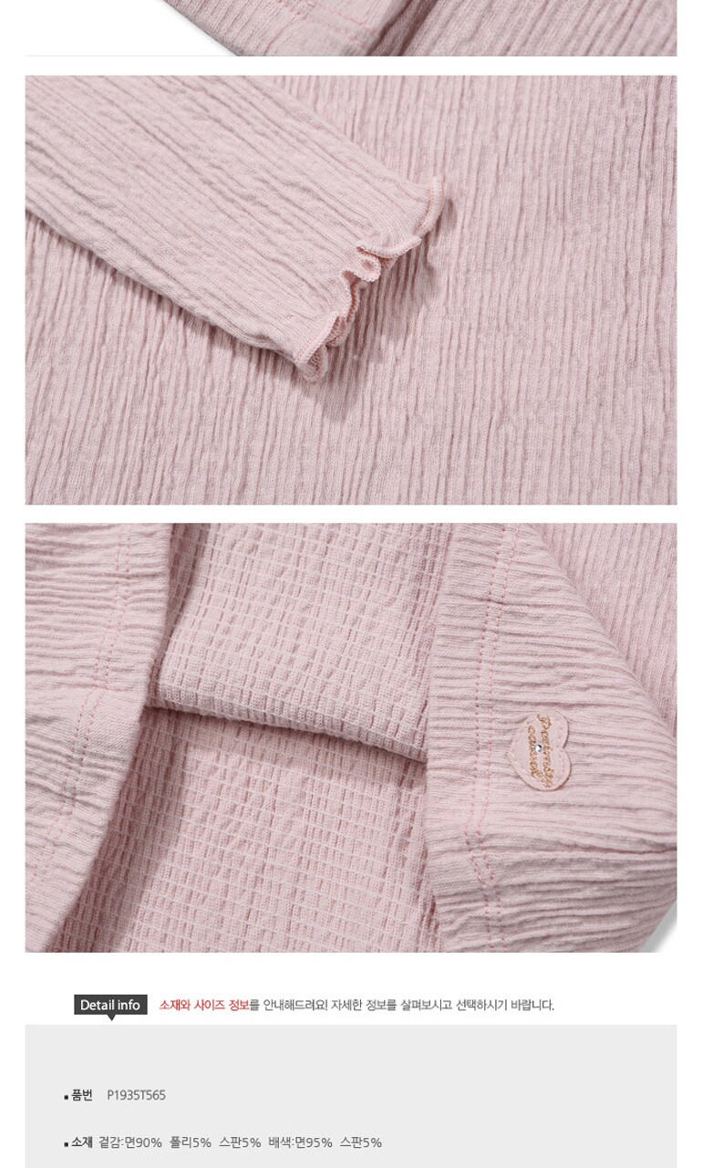 1. 제품 소재 (섬유의 조성 또는 혼용률을 백분율로 표시, 기능성인 경우 성적서 또는 허가서) | 겉감:면90% 폴리5% 스판5% 배색:면95% 스판5% |