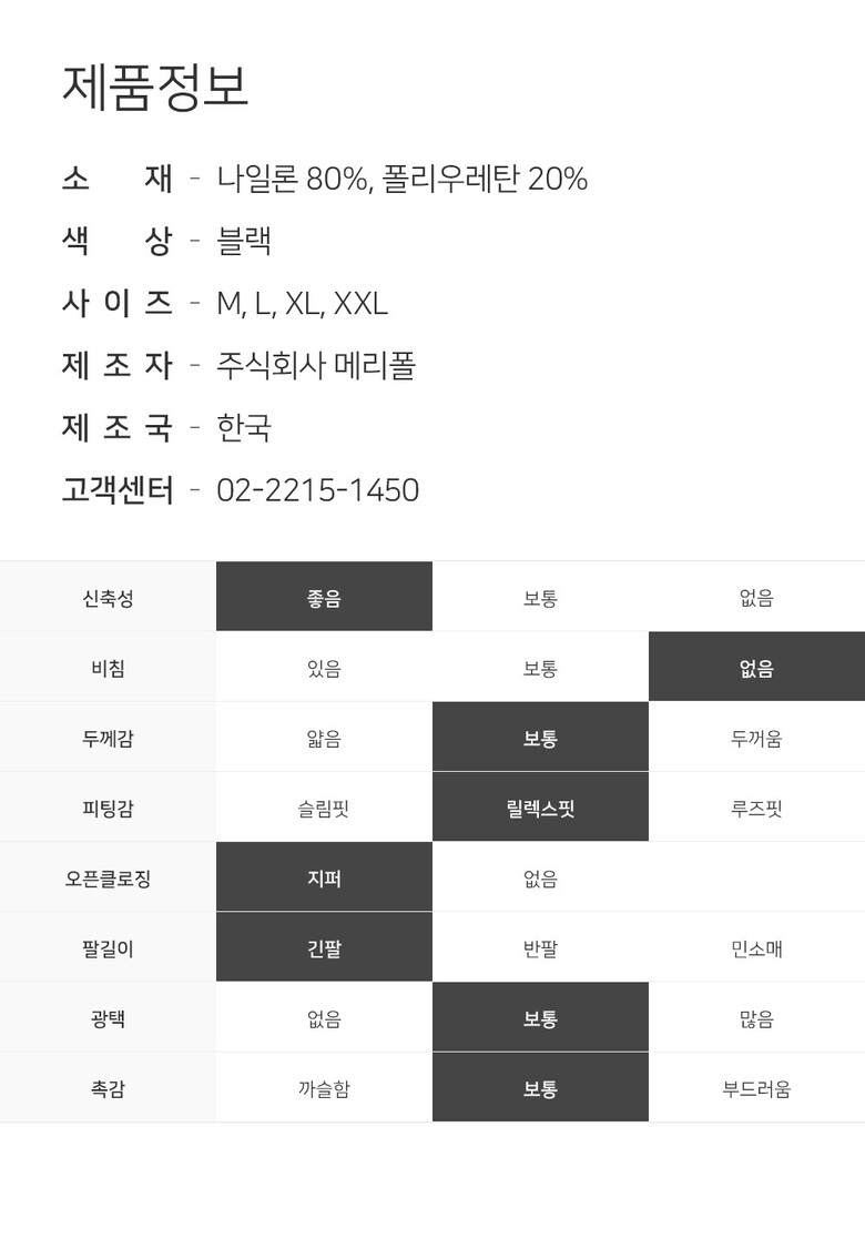 | 1. 제품 소재 (섬유의 조성 또는 혼용률을 백분율로 표시, 기능성인 경우 성적서 또는 허가서) | 나일론 80%, 폴리우레탄 20% |
