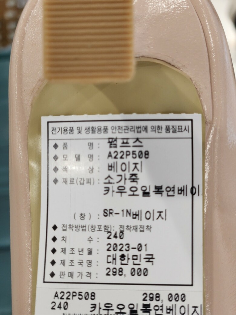 | 1. 제품 소재 (운동화인 경우에는 겉감, 안감을 구분하여 표시) | 소가죽 |