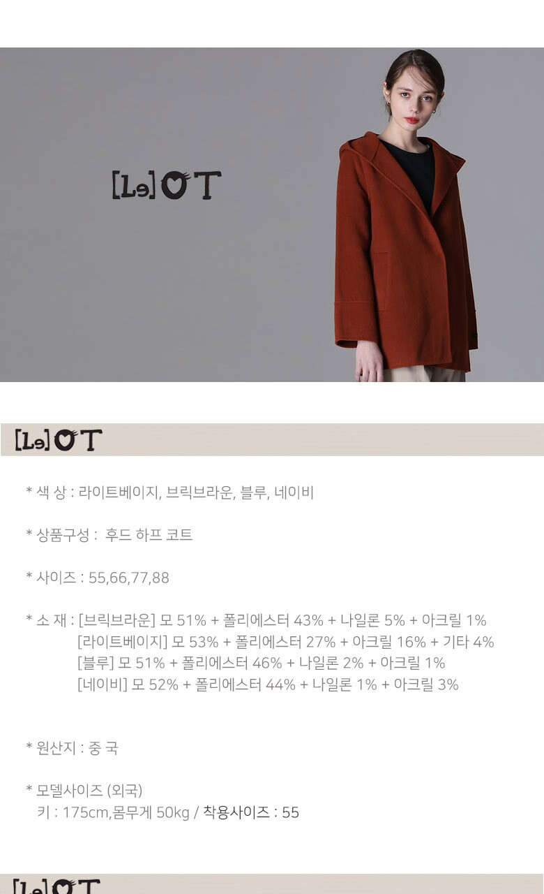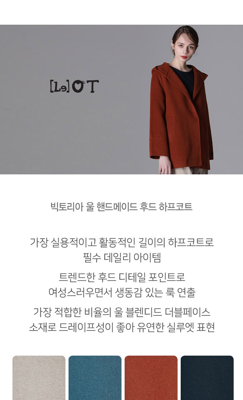 [르오트] 빅토리아 울 핸드메이드 후드 하프코트