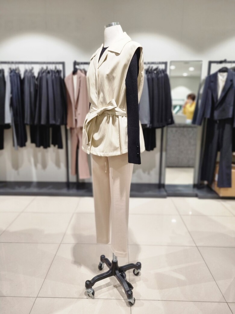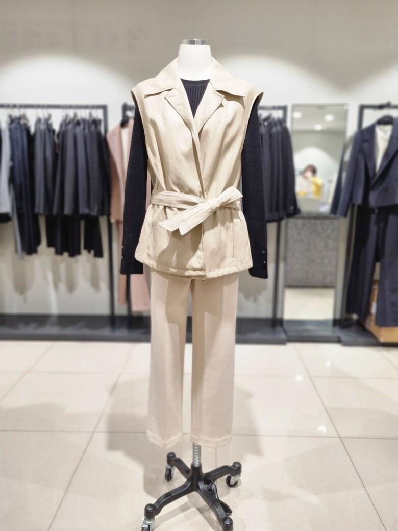 제천 소재 옵션 벨트로 여밈과 실루엣 조절이 가능합니다.