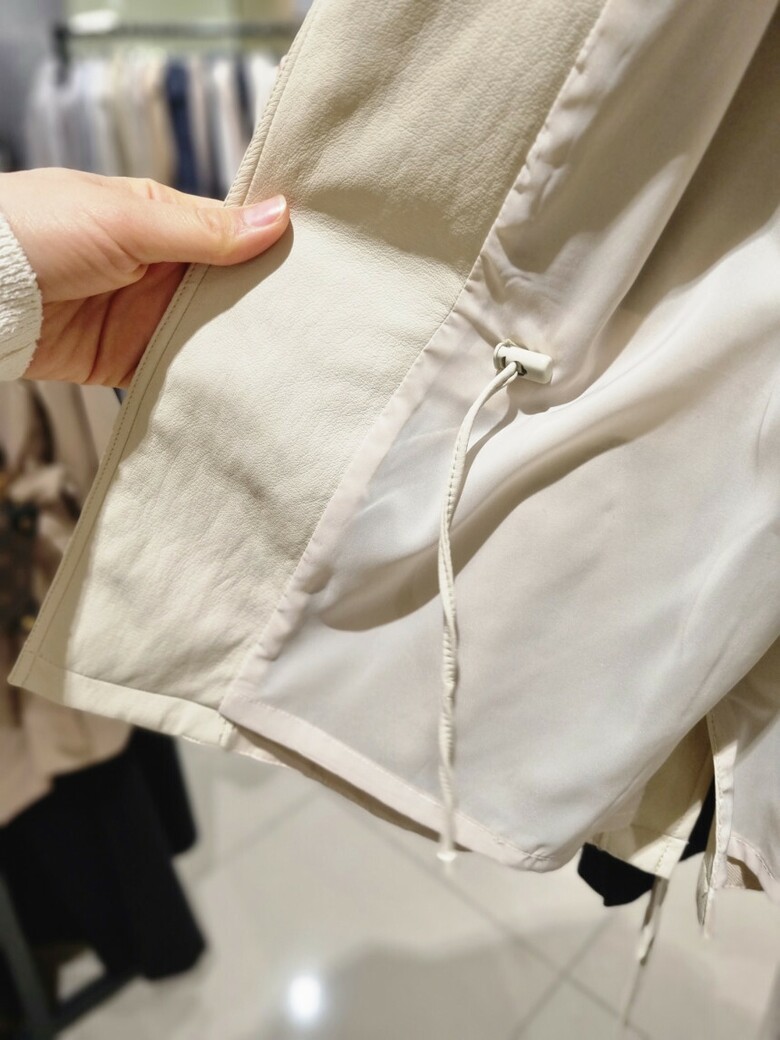 인조 가죽 소재의 베스트로 허릿단 이면 드로우 스트링과