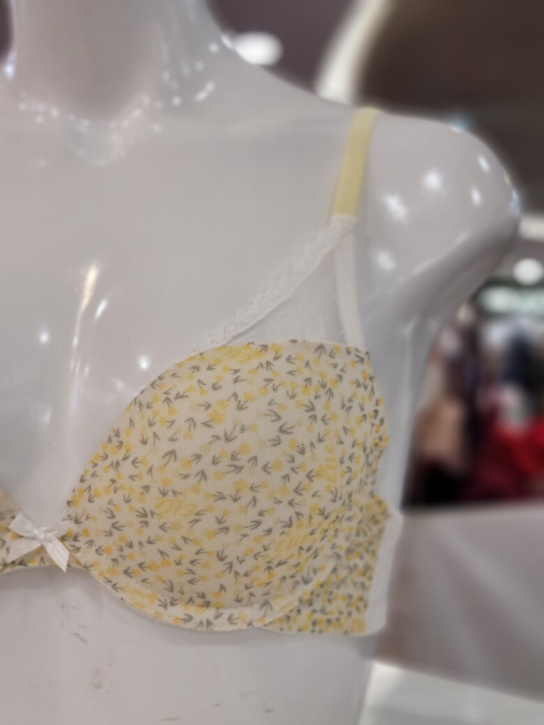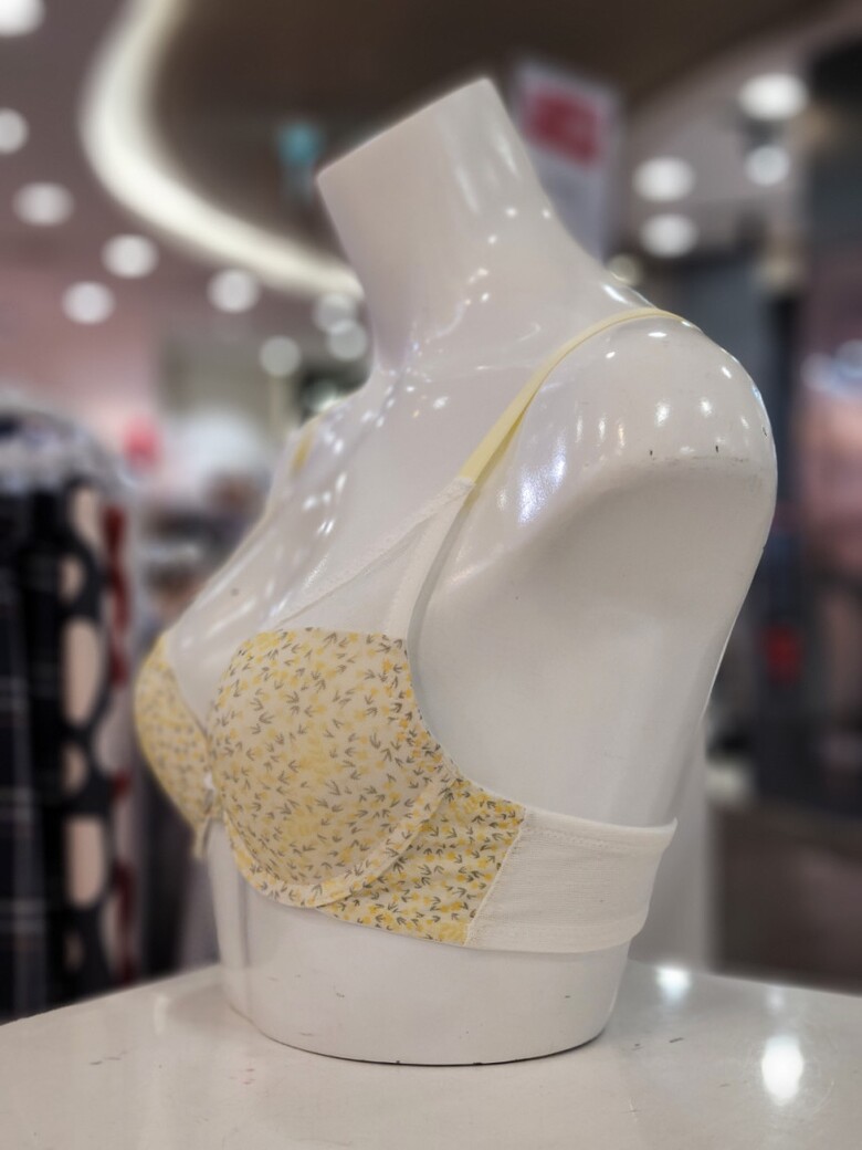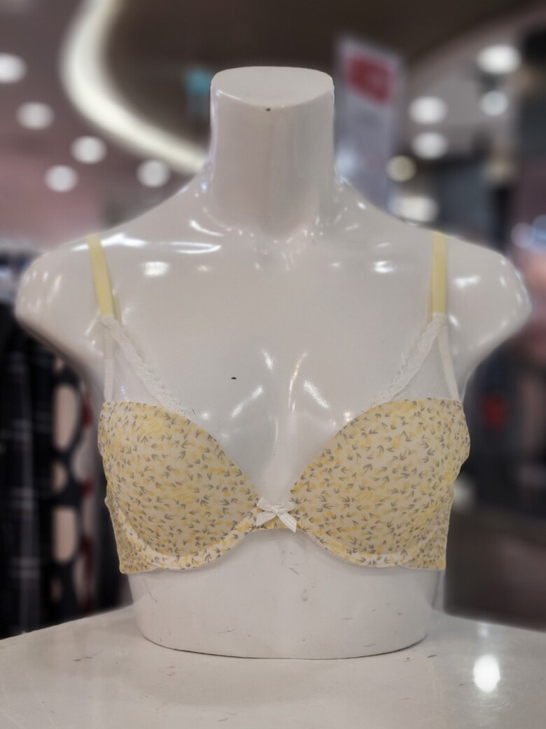 화사한 옐로우 색상에 플라워 패턴이 포인트인 여성 브라입니다.