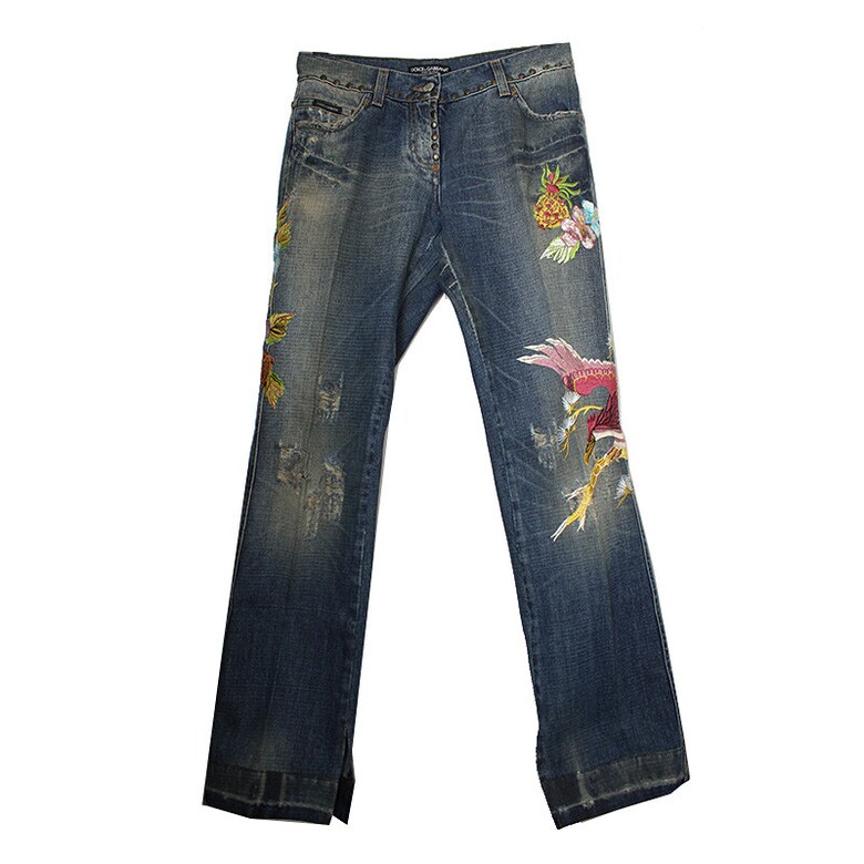 [중고명품] 돌체 앤 가바나 하와이안 자수 데님 팬츠 55