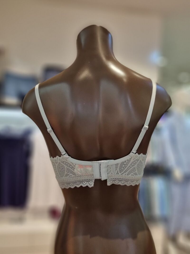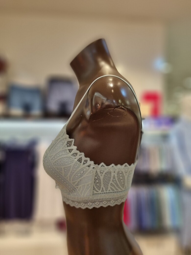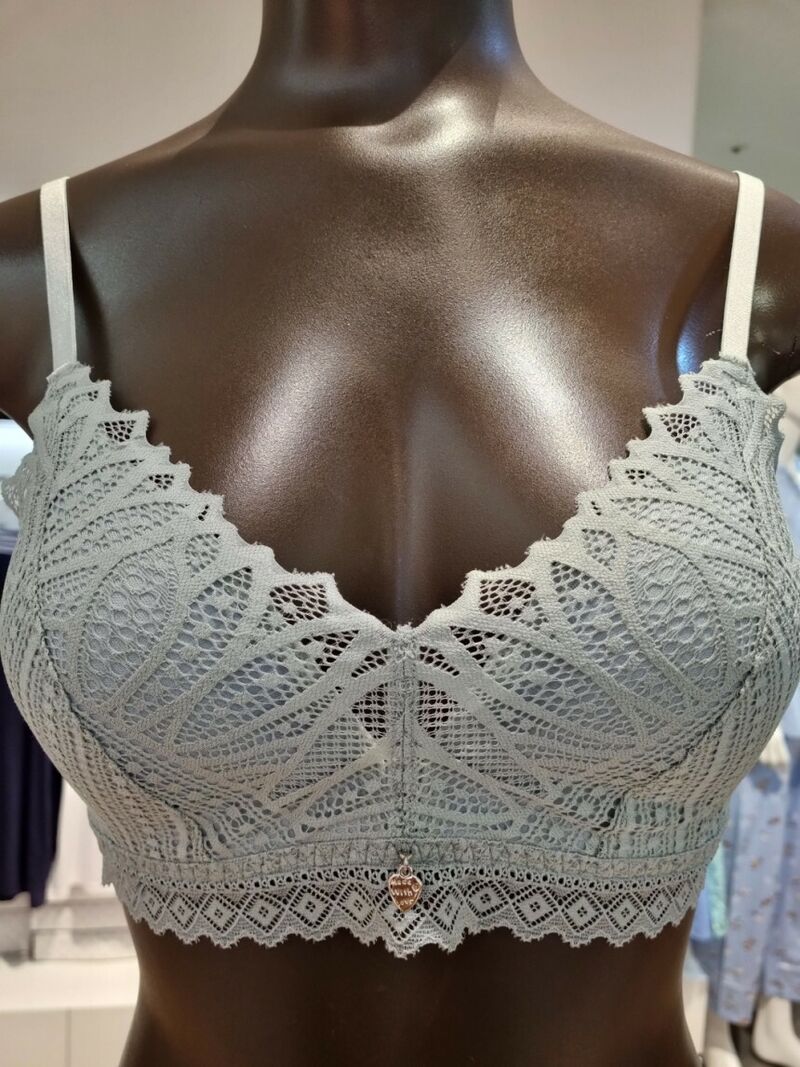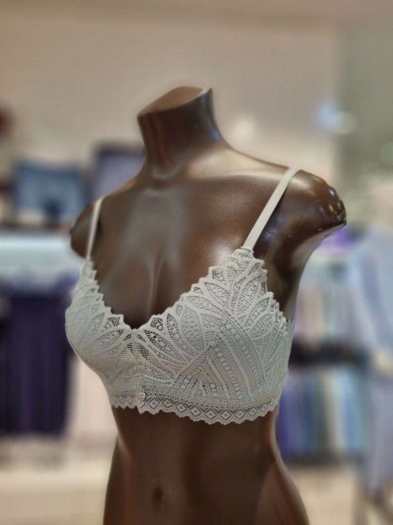 3/4의 몰드컵위로 중심을 기준으로 전체적으로 레이스가 올가있는 디자인의 노와이어브라렛입니다.