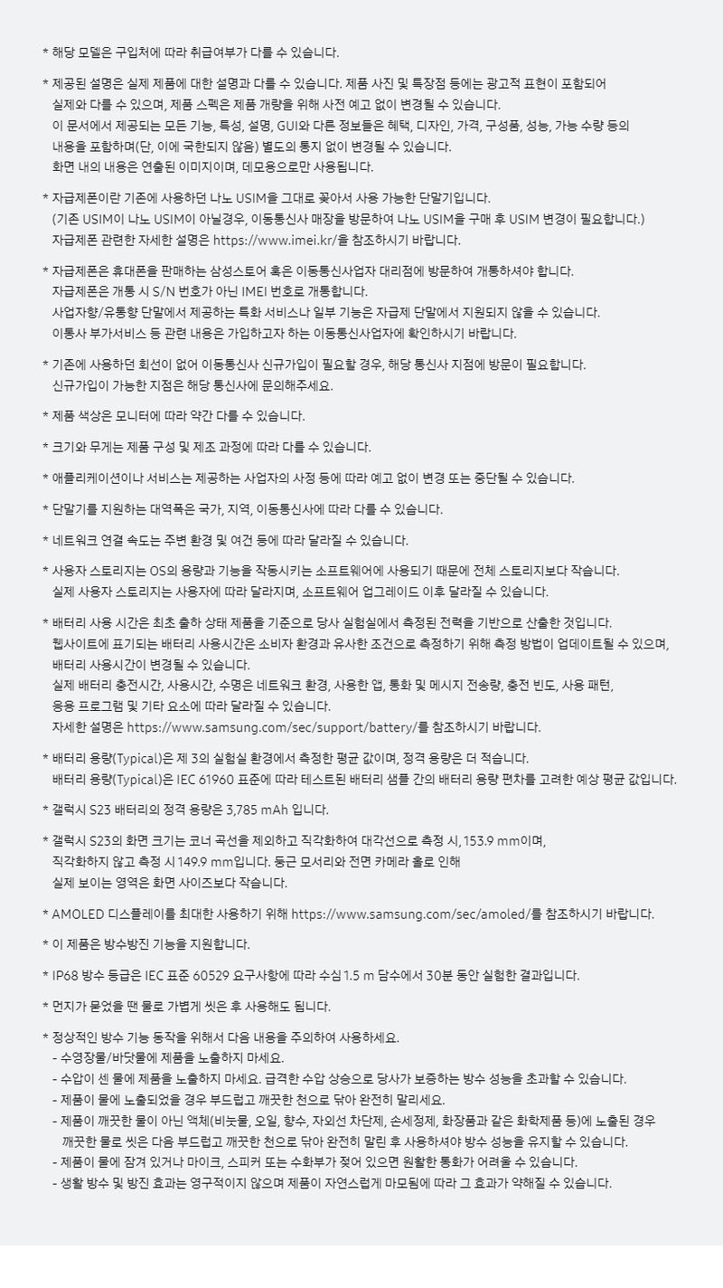 [정식런칭/당일수령] 삼성 갤럭시 S23 256GB SM-S911N 자급제
