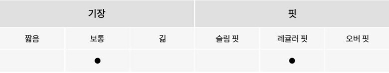 · 핏감 : □ 루즈 ■ 표준 □ 슬림