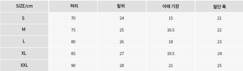사이즈 : S(90),M(95),L(100),XL(105),XXL(110)
