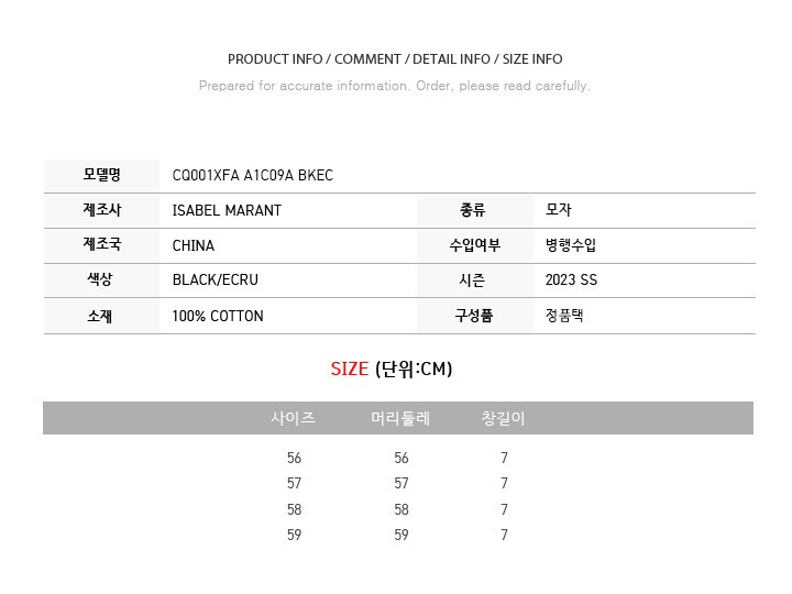 이자벨마랑 23SS TYRON 캡모자 블랙에쿠르 CQ001XFA A1C09A BKEC