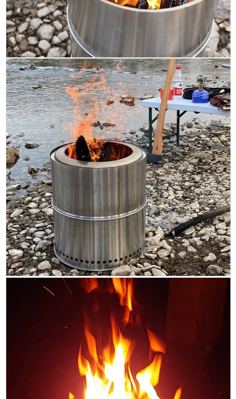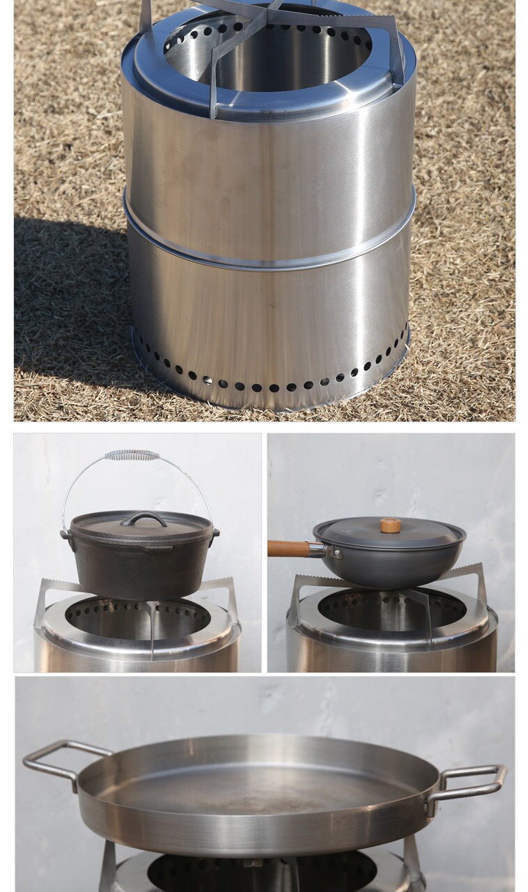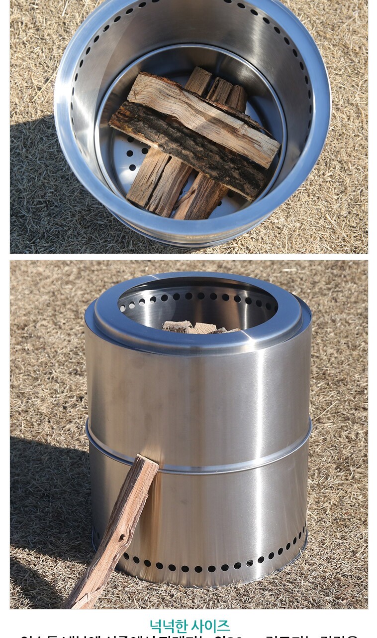 캠핑 야외 이중 연소 화로대 초대형 원형 우드 스토브