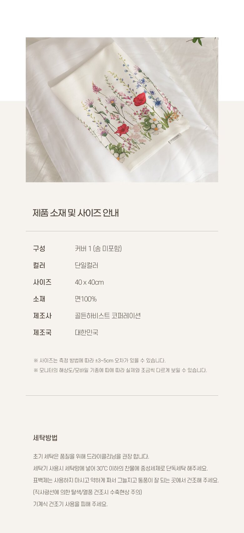 | 7. 세탁방법 및 취급시 주의사항 | 상세페이지 참조 |