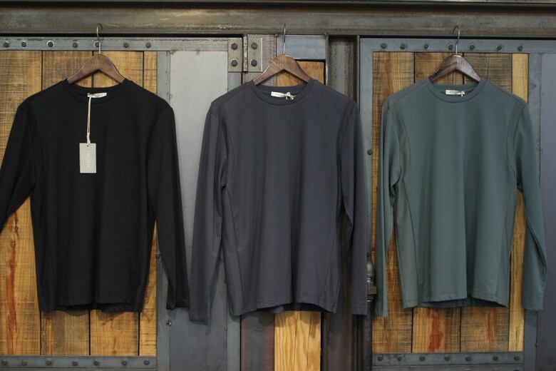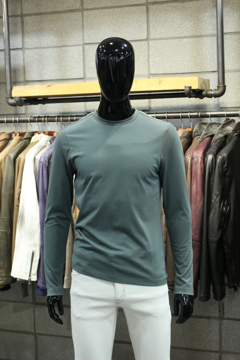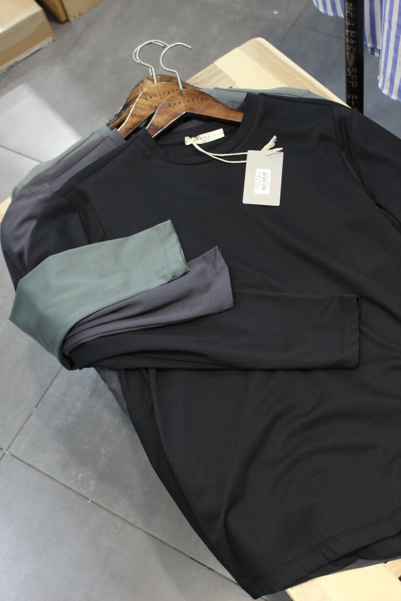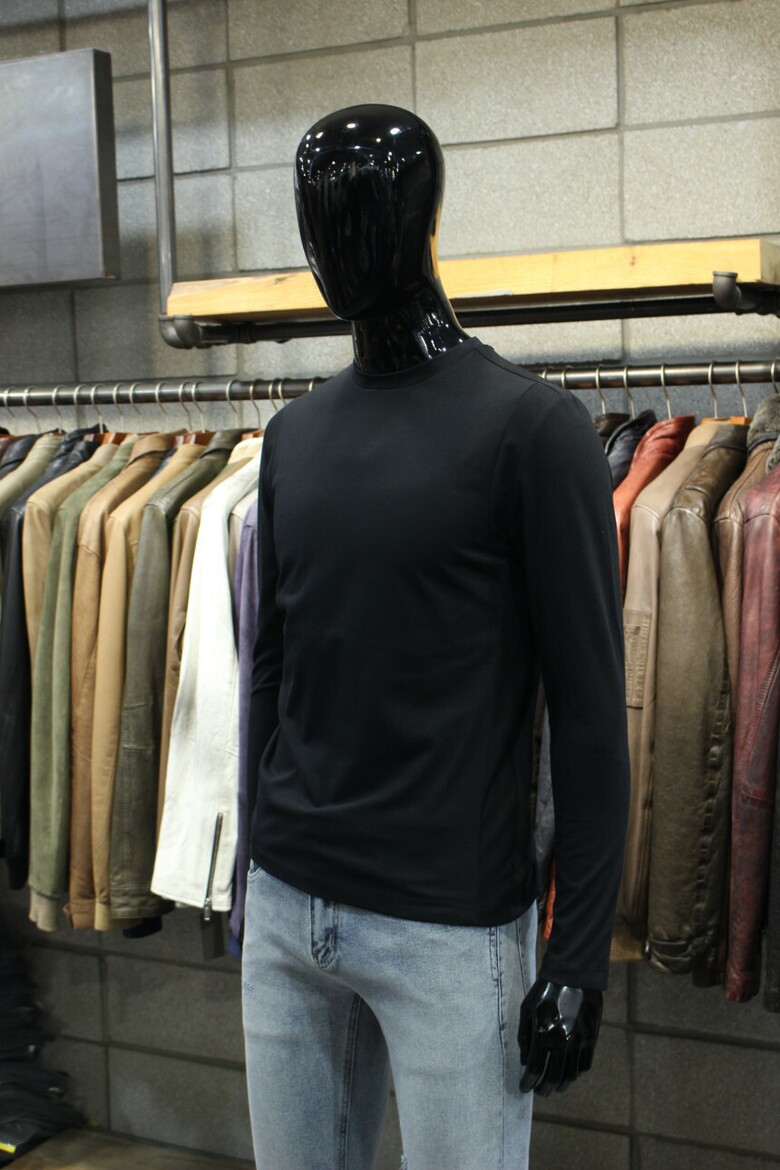 봄가을 기본티로 활용하기좋은 면혼방스판원단 라운드넥긴팔티입니다