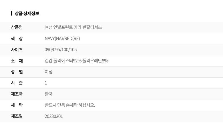 1. 제품 소재 (섬유의 조성 또는 혼용률을 백분율로 표시, 기능성인 경우 성적서 또는 허가서) | 겉감:폴리에스터92% 폴리우레탄8% |