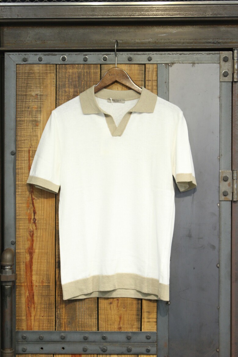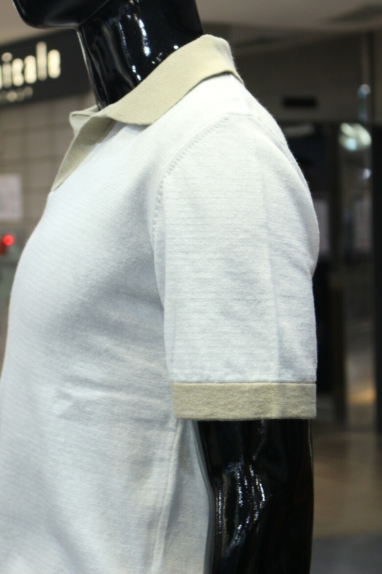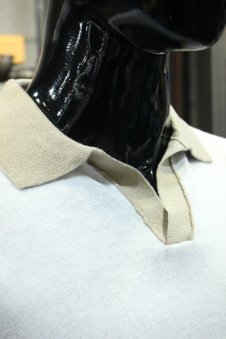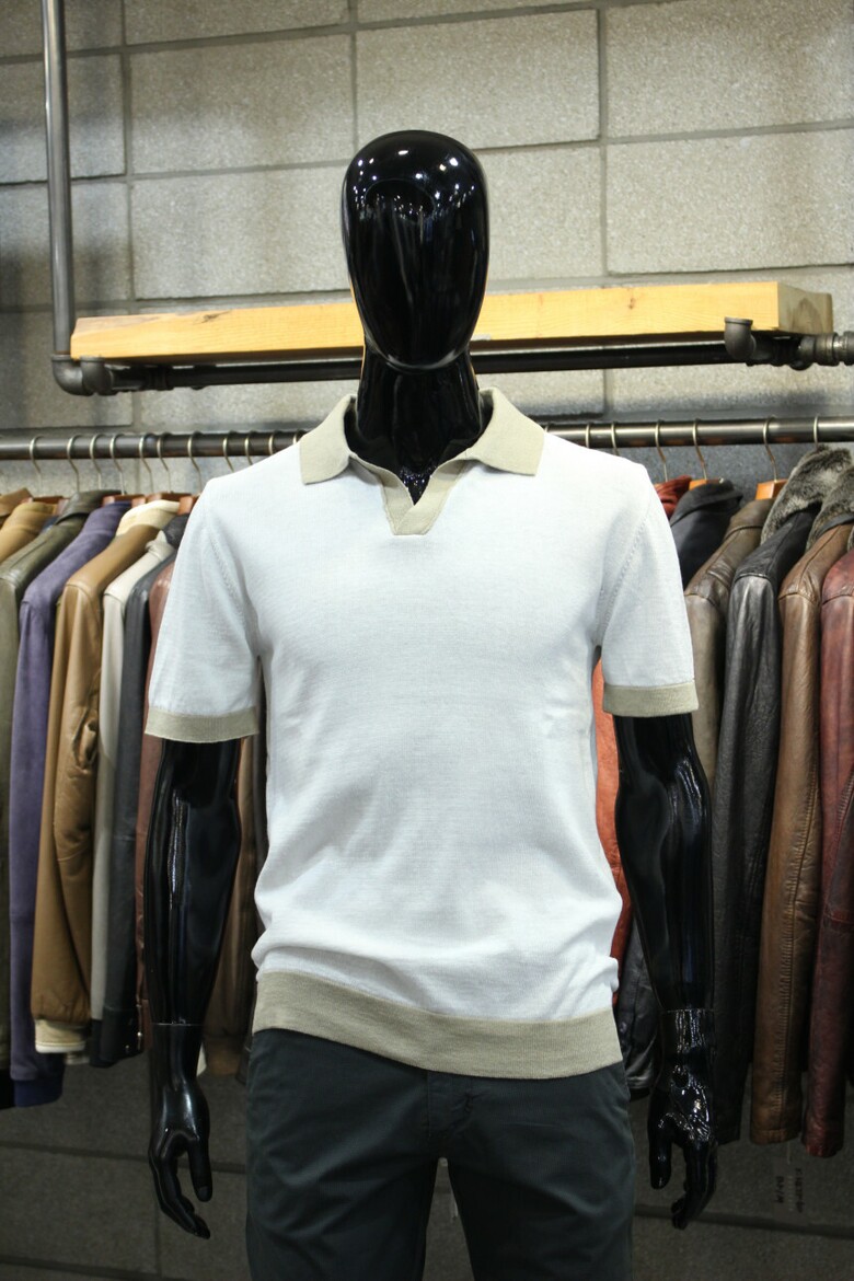 이태리직수입 린넨코튼블랜드 화이트배색반팔카라니트티 f-init02wh