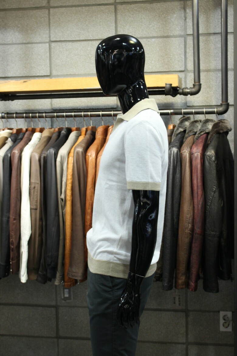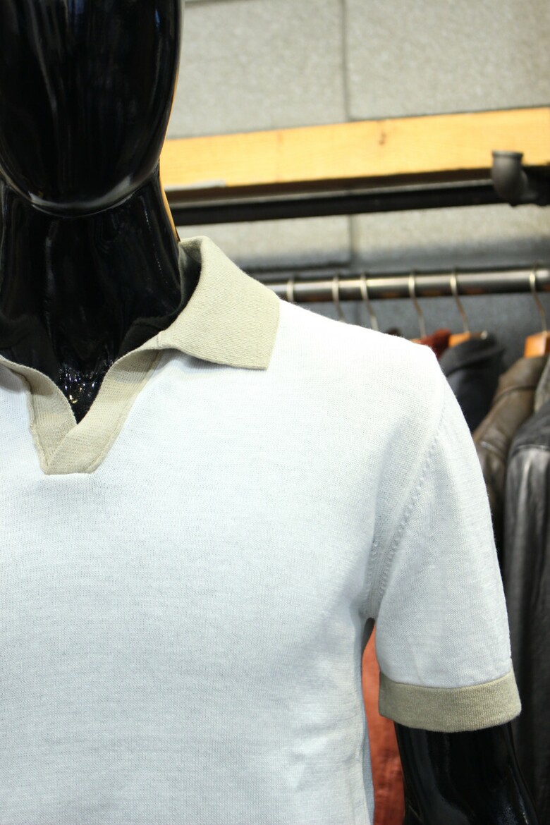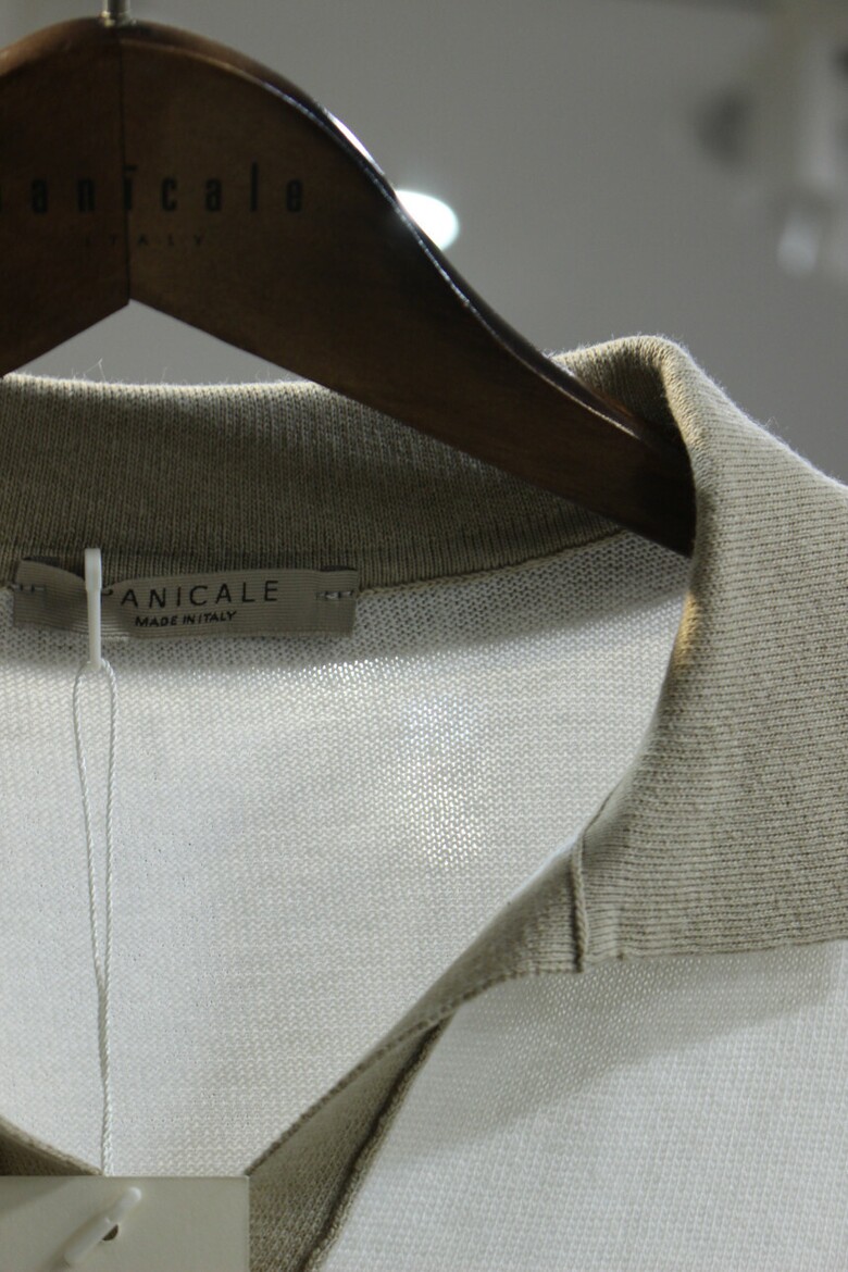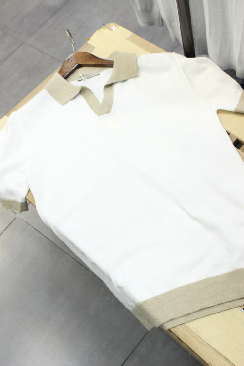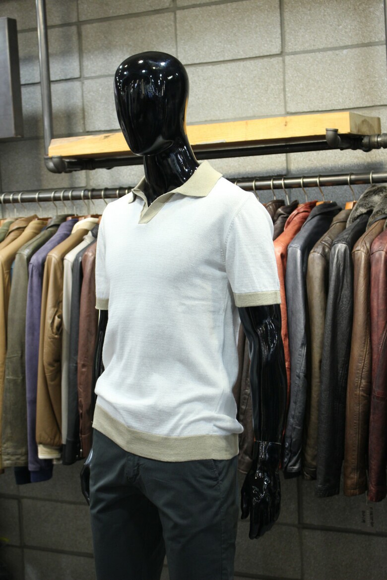이태리직수입 린넨코튼블랜드 화이트배색반팔카라니트티 f-init02wh