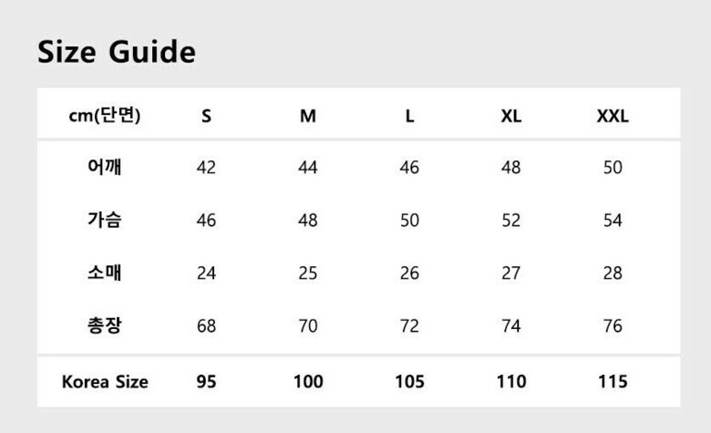 사이즈 : 95(S),100(M),105(L),110(XL),115(XXL)
