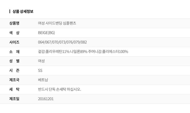 1. 제품 소재 (섬유의 조성 또는 혼용률을 백분율로 표시, 기능성인 경우 성적서 또는 허가서) 겉감:폴리우레탄11% 나일론89% 주머니감:폴리에스터100%
